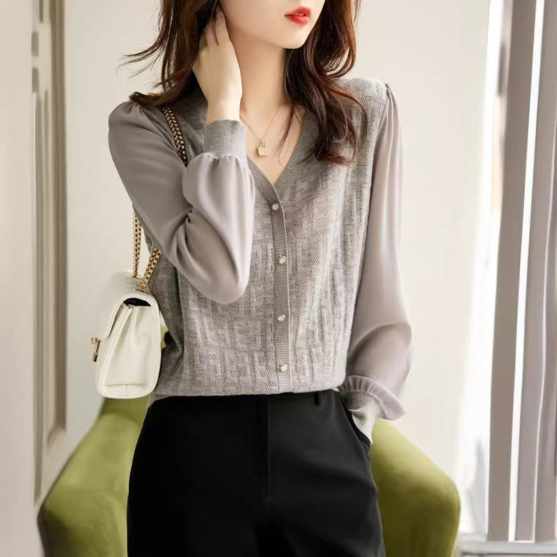 Áo dệt kim dài tay cổ V cài khuy  - AT40824