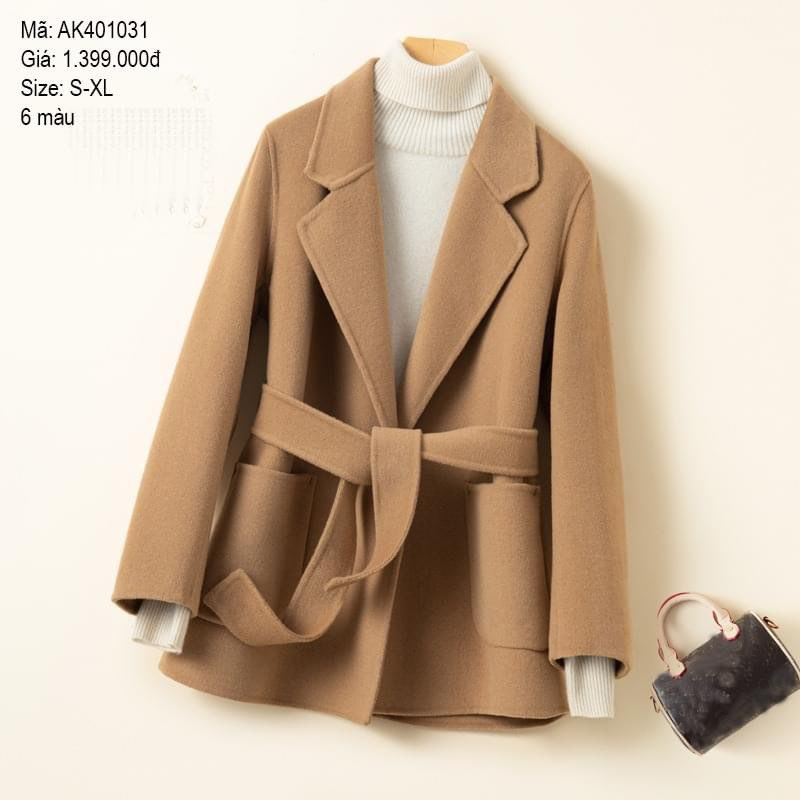 - Áo khoác dạ cao cấp kèm dây đai - AK401031