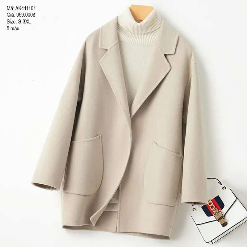 - Áo khoác dạ cashmere cao cấp hai túi vuông - AK411101