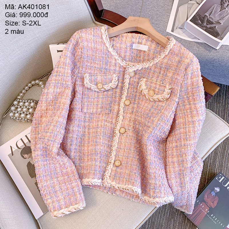 - Áo khoác dạ tweed cổ tròn cao cấp - AK401081