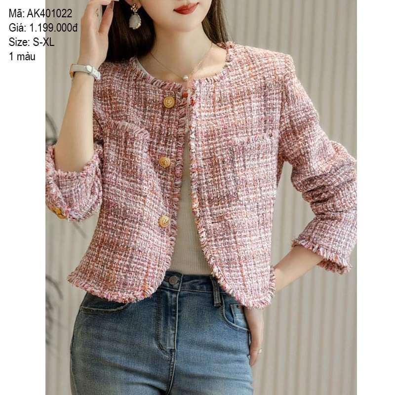- Áo khoác dạ tweed viền tua rua - AK401022