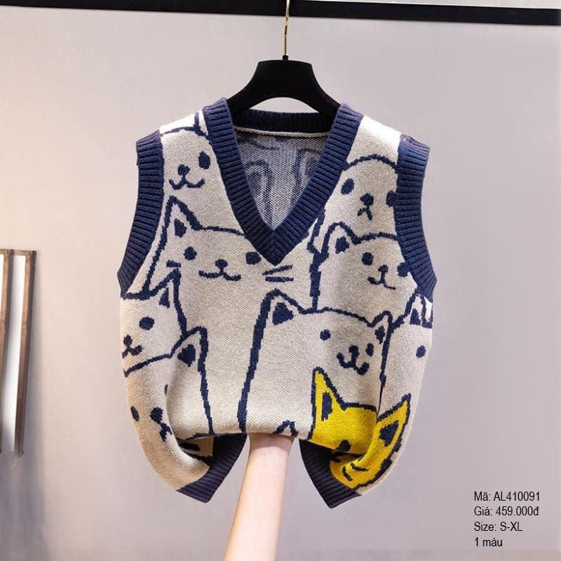 Áo len gile cổ V họa tiết mèo dễ thương - AL410091