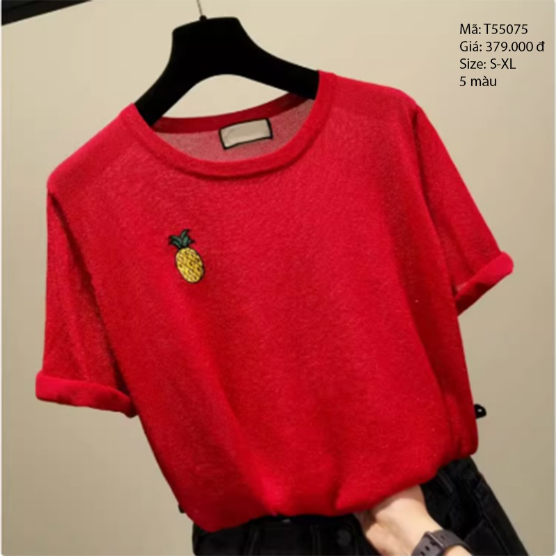 Áo thun cổ tròn thêu dứa - T55075