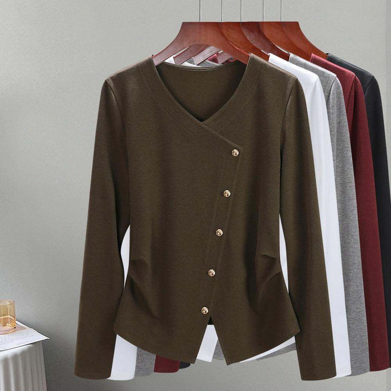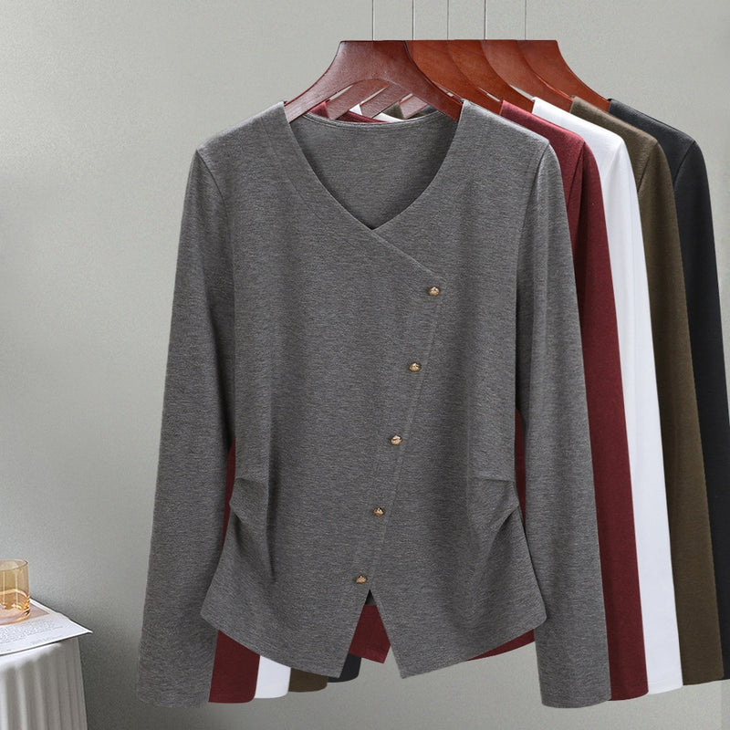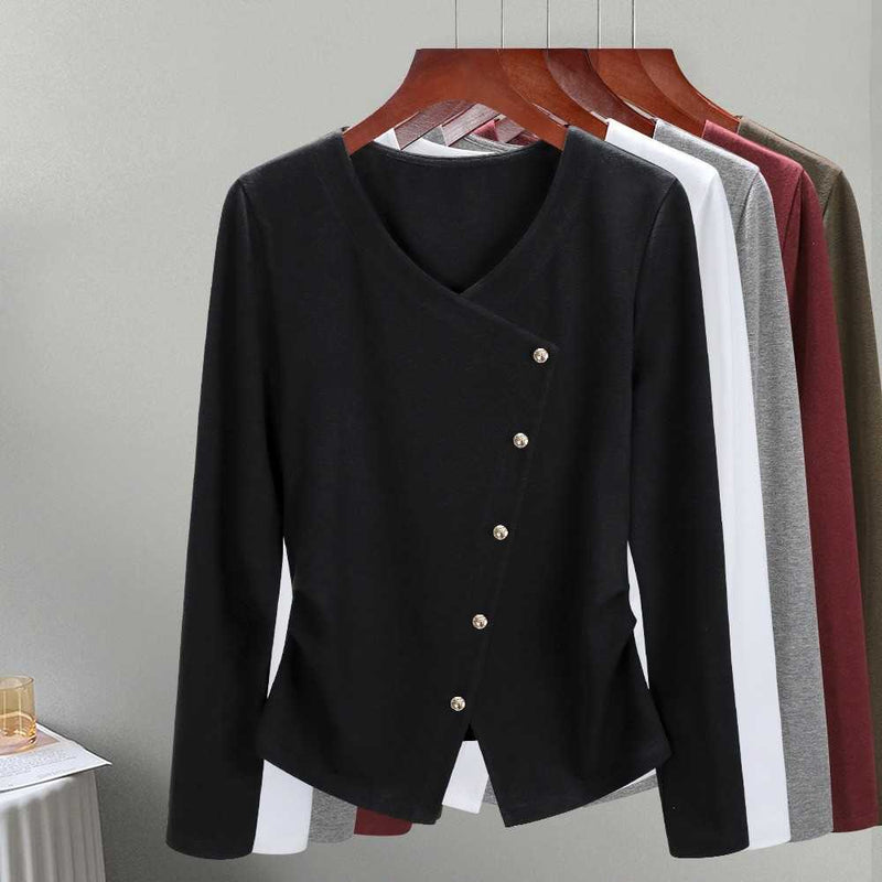 Áo thun dài tay cổ V đính khuy chéo - AL409065