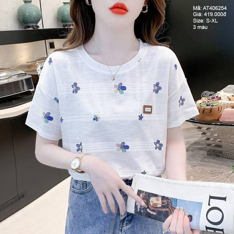 Áo thun ngắn tay cổ tròn hoa cánh - AT406254