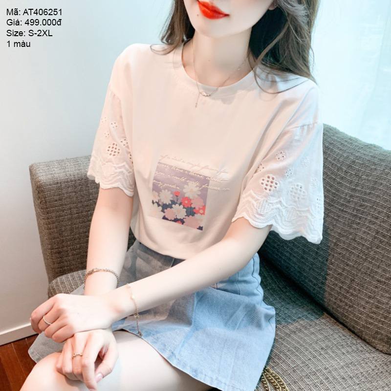 Áo thun ngắn tay cổ tròn in hoa - AT406251