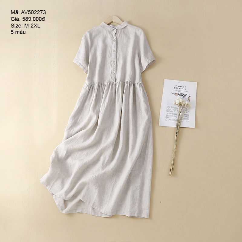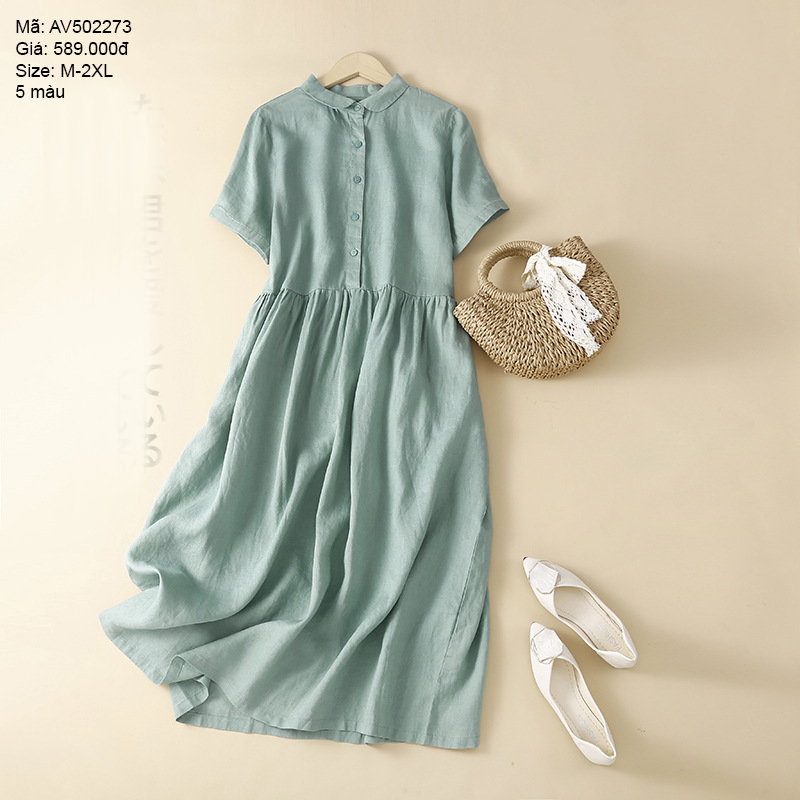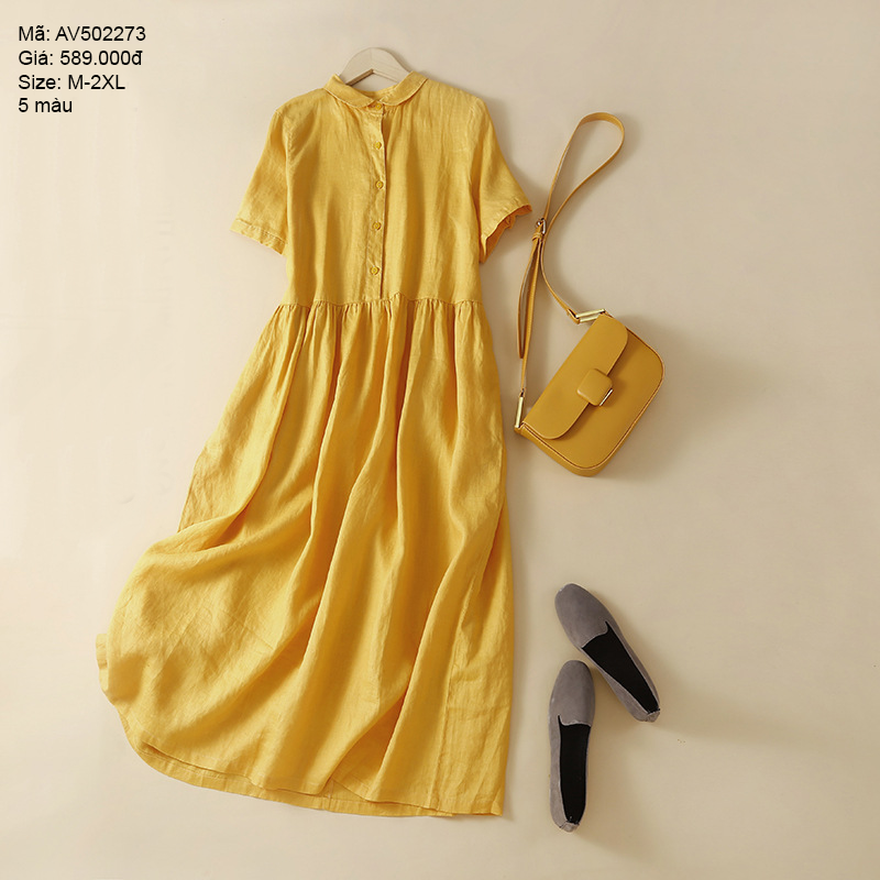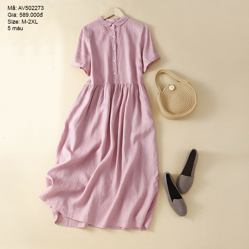 Đầm liền cổ pipi ngắn tay form suông - AV502273