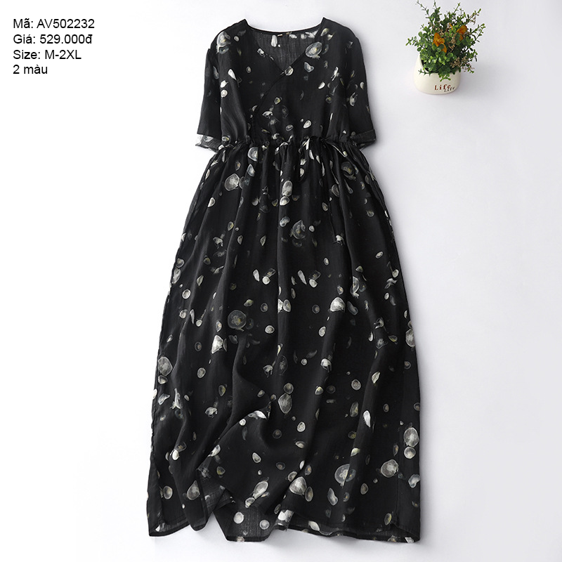 Đầm liền cổ V in hoa 5 cánh - AV502271 Chất liệu cotton TOÀN BỘ SẢN PHẨM CỦA AKAY LÀ HÀNG ORDER KHÁCH HÀNG ĐẶT HÀNG VUI LÒNG CHỜ NHẬN HÀNG SAU 12 - 15 NGÀY
