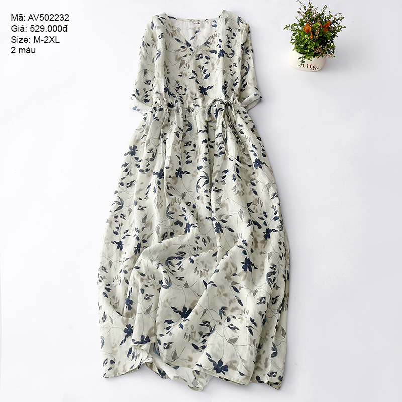 Đầm liền cổ V ngắn tay in hoa lá - AV502276 Chất liệu: tencel TOÀN BỘ SẢN PHẨM CỦA AKAY LÀ HÀNG ORDER KHÁCH HÀNG ĐẶT HÀNG VUI LÒNG CHỜ NHẬN HÀNG SAU 12 - 15 NGÀY