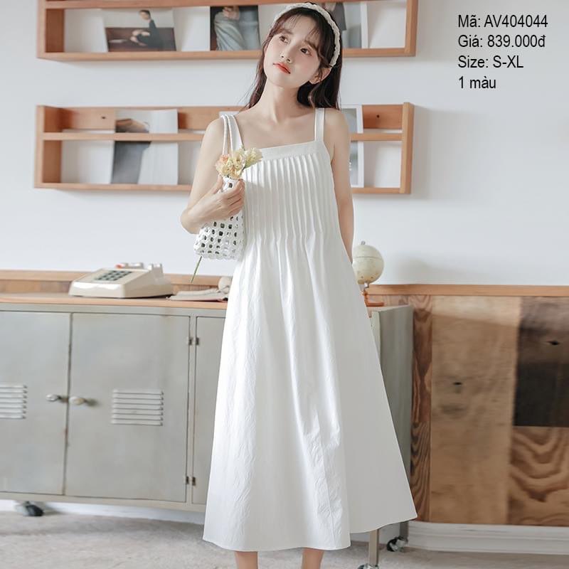 - Đầm liền hai dây xếp ly form xòe - AV404044
