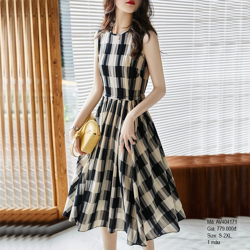 Đầm liền sát nách kẻ sọc nhún eo - AV404171