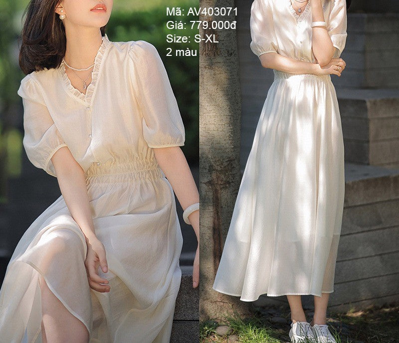 Đầm liền tencenl cổ V ngắn tay - AV403071