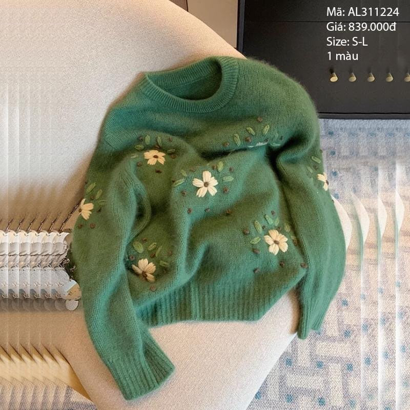 Áo len dệt kim dài tay thêu hoa cổ tròn - AL311224