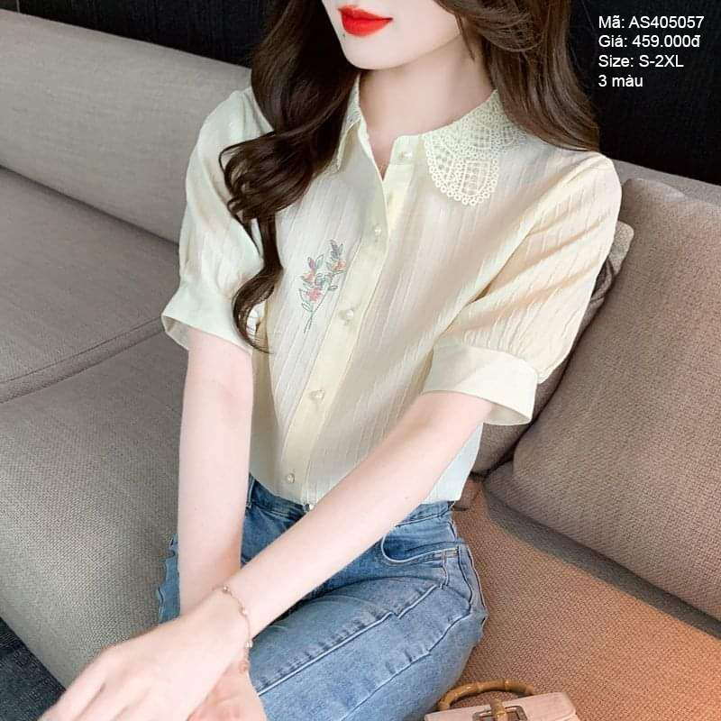 Áo sơ mi cổ ren ngắn tay thêu hoa đa sắc - AS405057