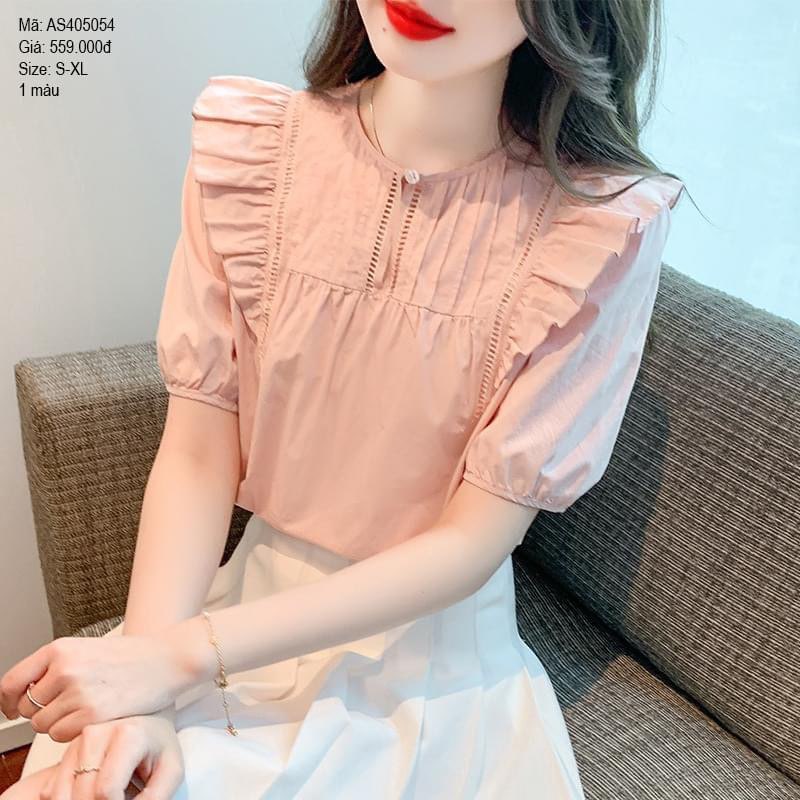 Áo sơ mi cổ tròn ngắn tay vai bồng - AS405054