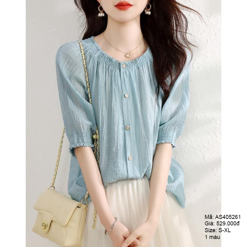 - Áo sơ mi cổ tròn tay bồng form suông - AS405261