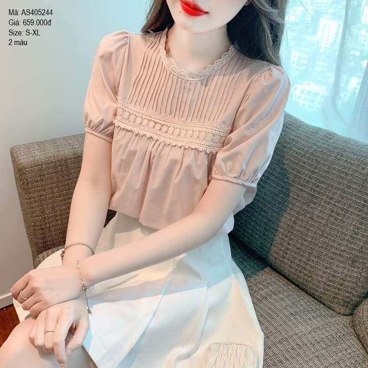 Áo sơ mi cổ tròn xếp ly ngắn tay - AS405244