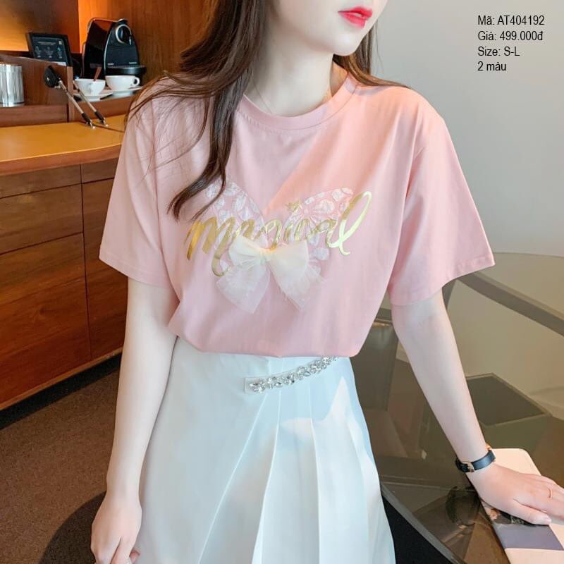 - Áo thun cổ tròn ngắn tay đính nơ - AT404192