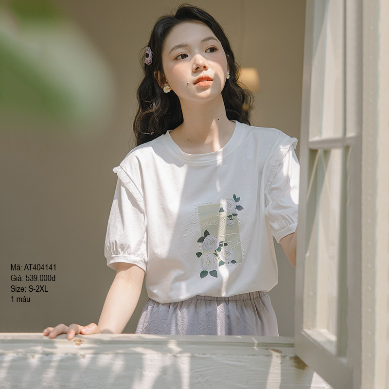 - Áo thun cổ tròn ngắn tay đính hoa - AT404141