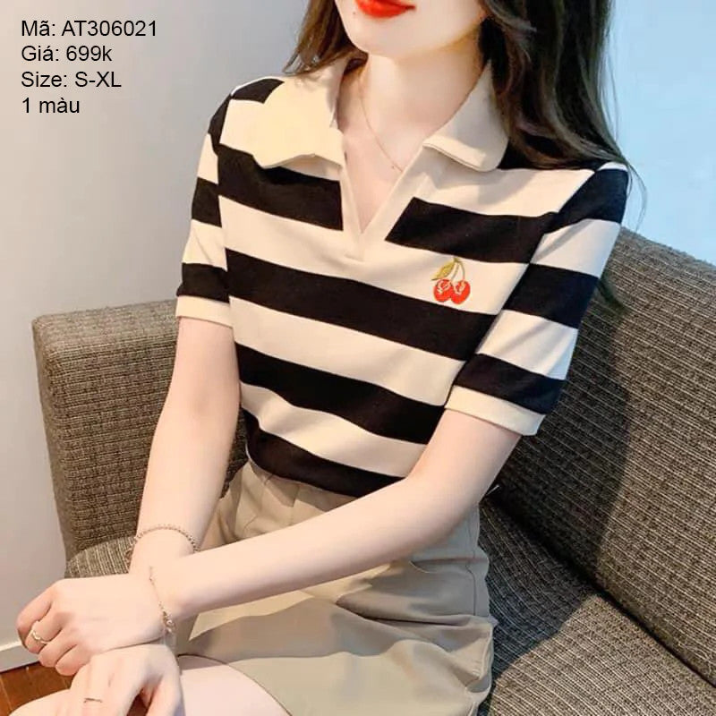 - Áo thun ngắn tay cổ bẻ thêu cherry - AT306021
