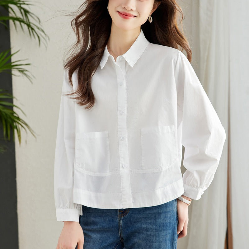 Áo sơ mi cổ đức ngắn tay túi ren - A55189