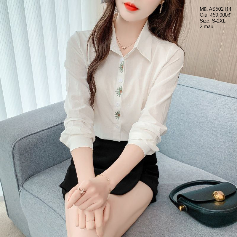 - Áo sơ mi cổ đức dài tay thêu hoa - AS502114