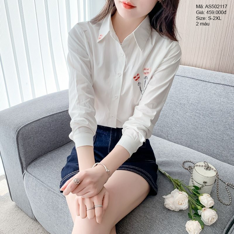 Áo sơ mi cổ đức dài tay thêu tim - AS502117