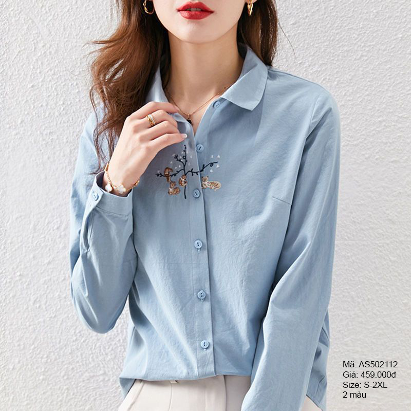 - Áo sơ mi cổ đức thêu hoa - AS502112