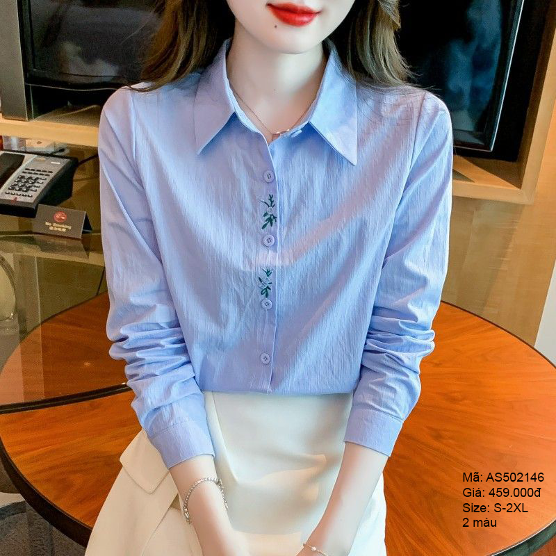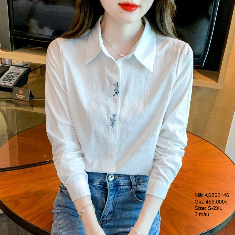 Áo sơ mi cổ đức thêu hoa lá - AS502146