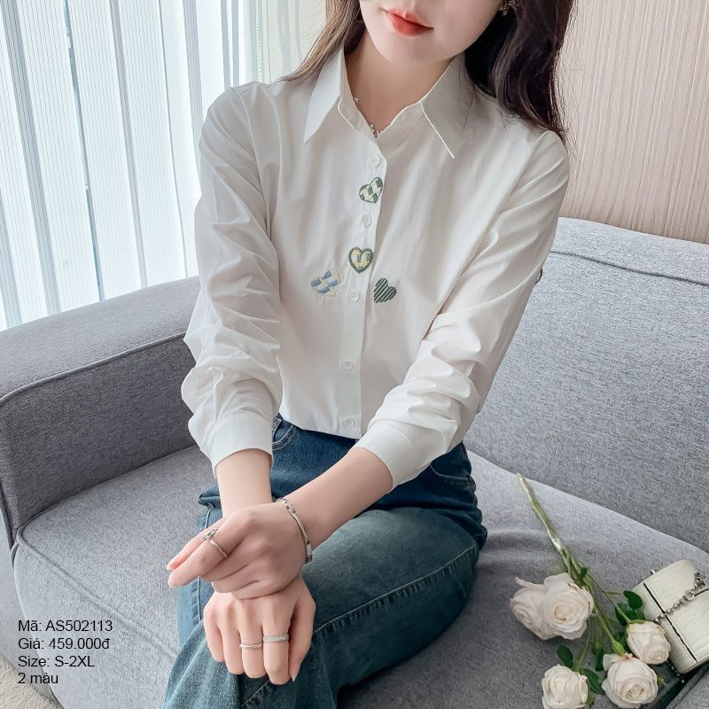 - Áo sơ mi cổ đức thêu trái tim - AS502113