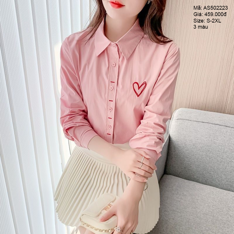 - Áo sơ mi cổ đức thêu trái tim - AS502223