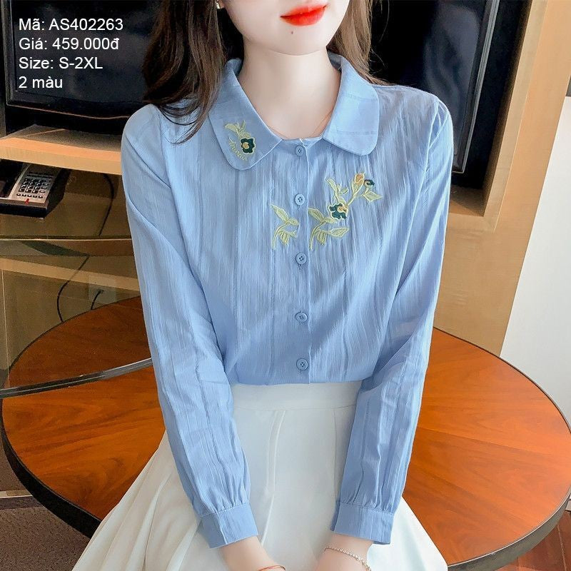 - Áo sơ mi cổ pipi dài tay thêu hoa - AS402263