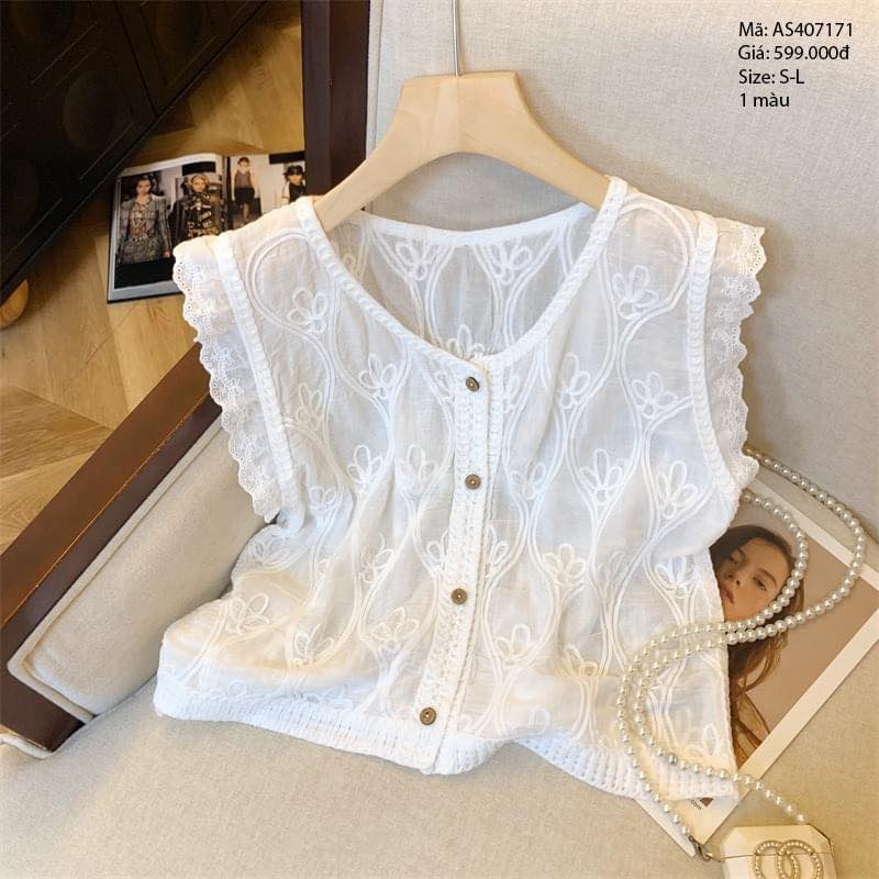 - Áo sơ mi cổ tim sát nách thêu hoa 4 cánh - AS407171