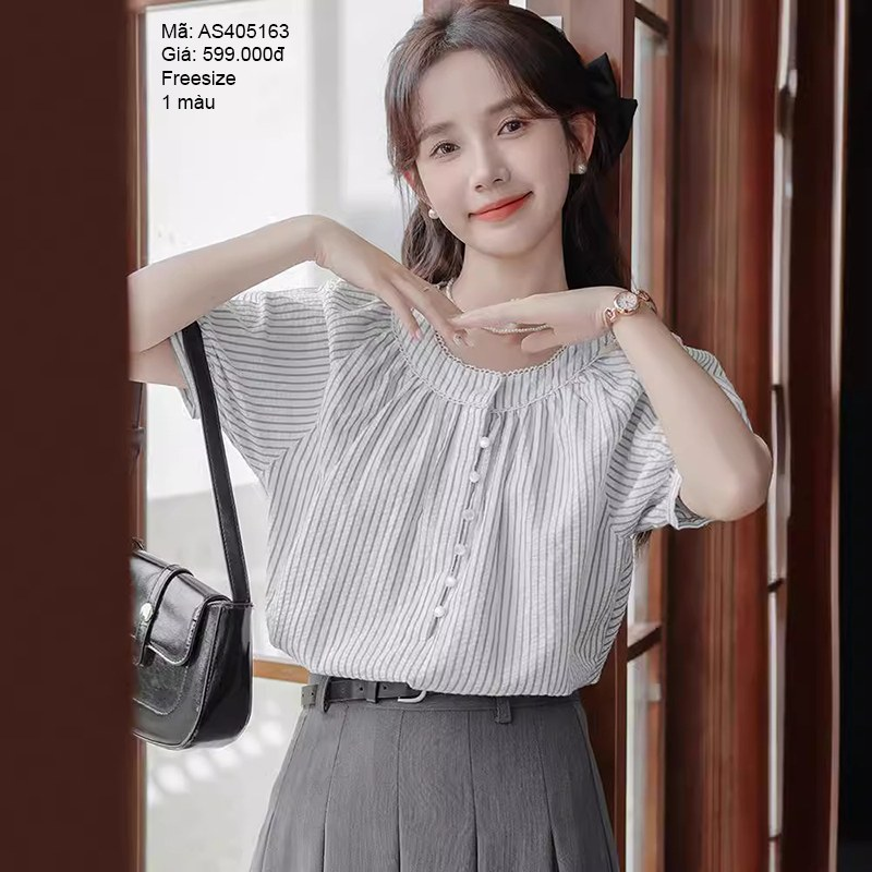 Áo sơ mi cổ tròn kẻ sọc khuy kiểu - AS405163