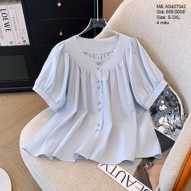 - Áo sơ mi cổ tròn ngắn tay form suông - AS407042