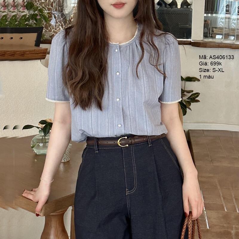 - Áo sơ mi cổ tròn ngắn tay khuy kiểu - AS406133