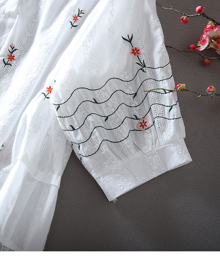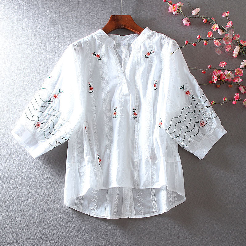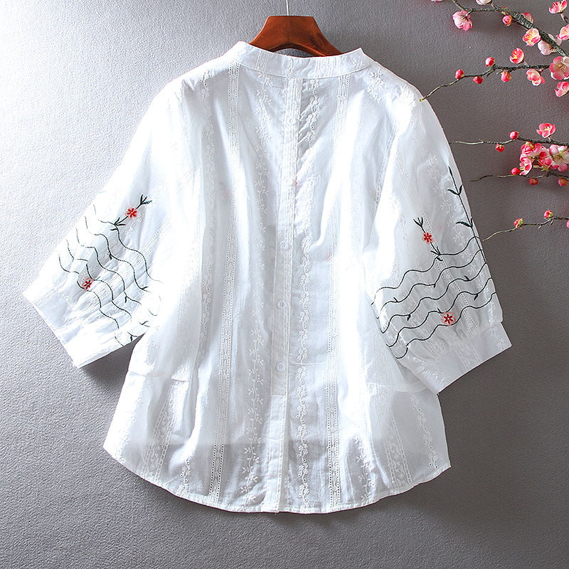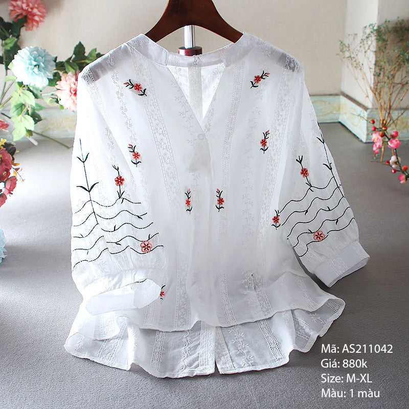 Áo sơ mi cổ tròn thêu hoa 6 cánh - AS211042
