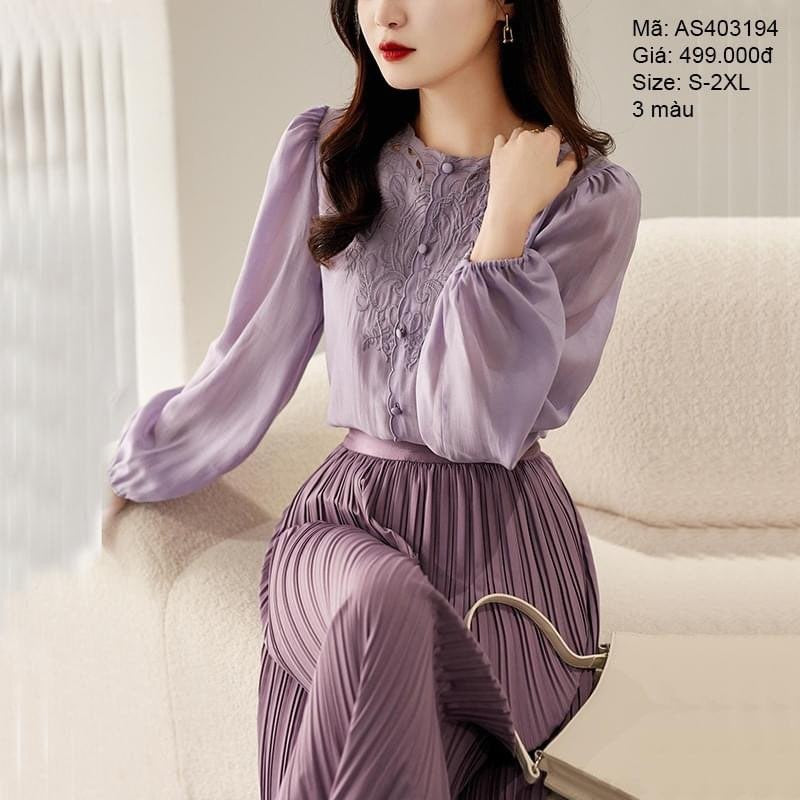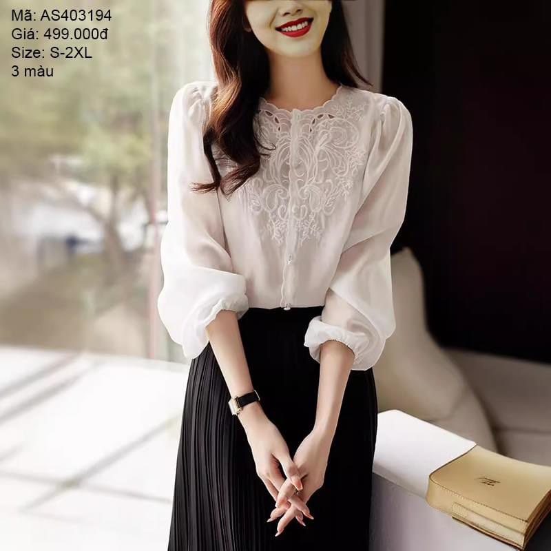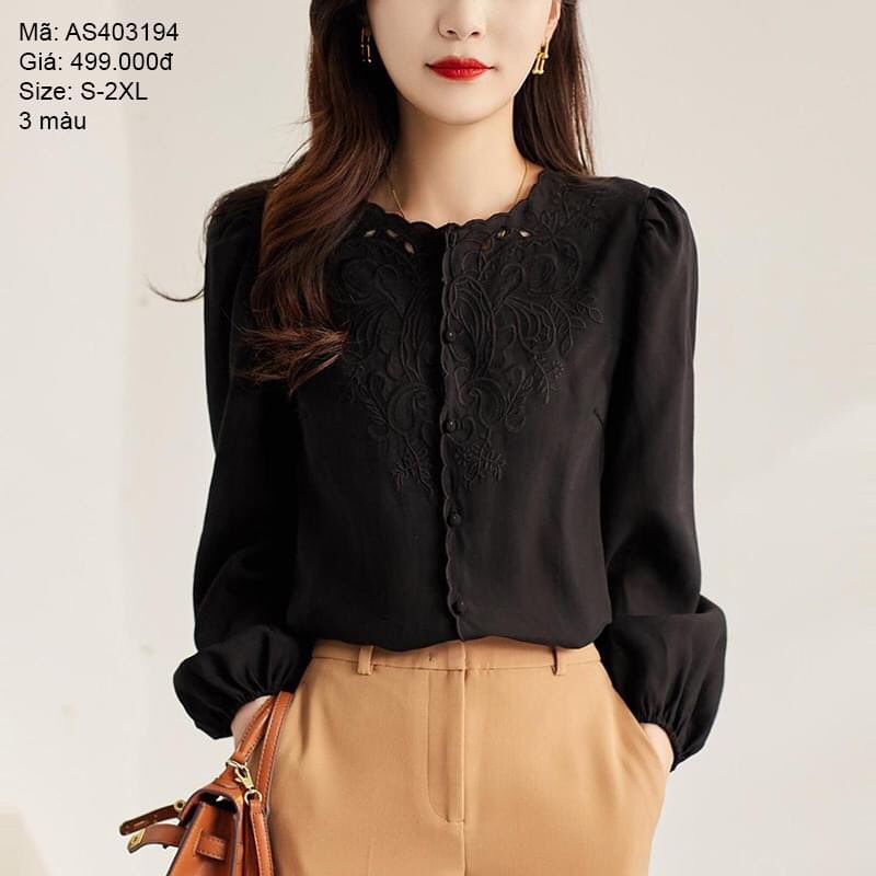 Áo sơ mi cổ tròn thêu ren dài tay - AS403194