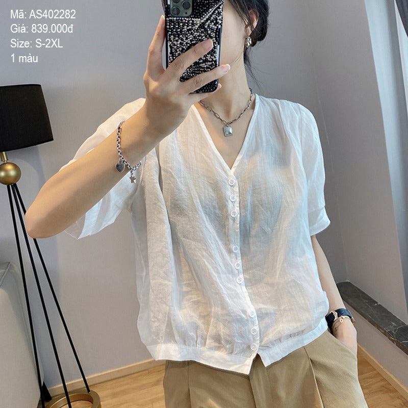 Áo sơ mi ngắn tay cổ V xếp ly - A55044 Chất liệu linen TOÀN BỘ SẢN PHẨM CỦA AKAY LÀ HÀNG ORDER KHÁCH HÀNG ĐẶT HÀNG VUI LÒNG CHỜ NHẬN HÀNG SAU 12 - 15 NGÀY