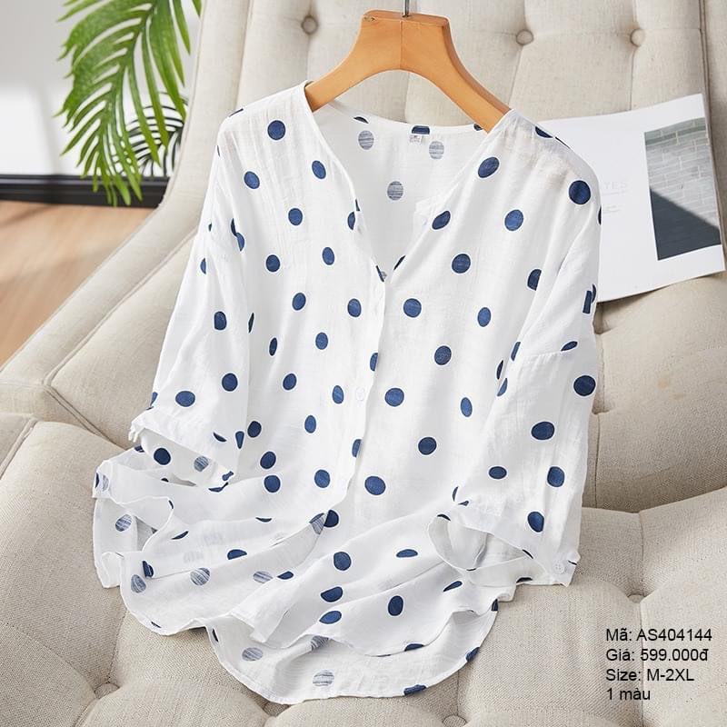 - Áo sơ mi chấm bi cổ tròn tay lửng - AS404144