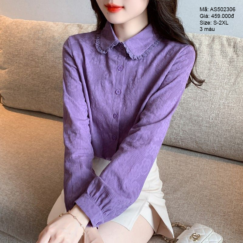 - Áo sơ mi dài tay cổ bẻ viền ren - AS502306