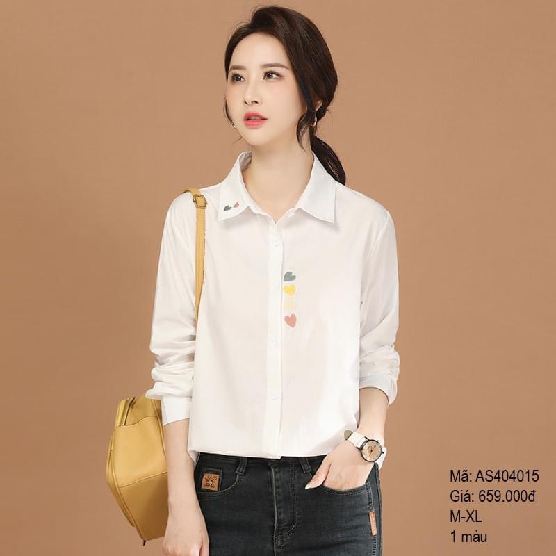 Áo sơ mi dài tay cổ đức thêu trái tim - AS404015