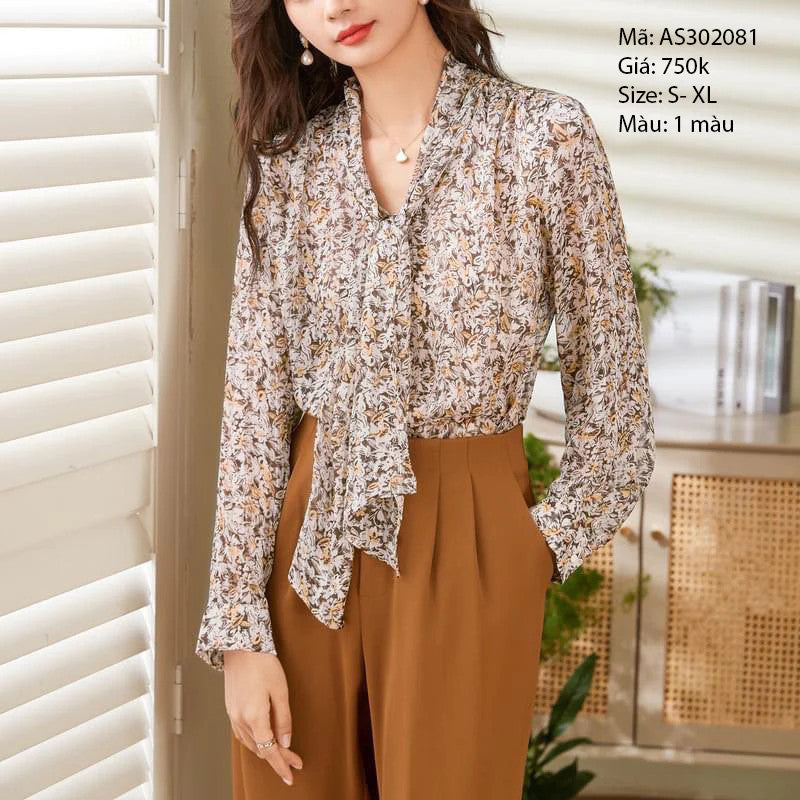 - Áo sơ mi dài tay in hoa cổ nơ - AS302081