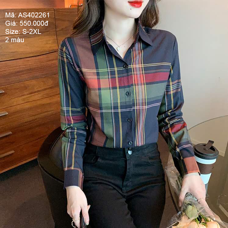 Áo sơ mi kẻ sọc caro dài tay cổ bẻ - AS402261