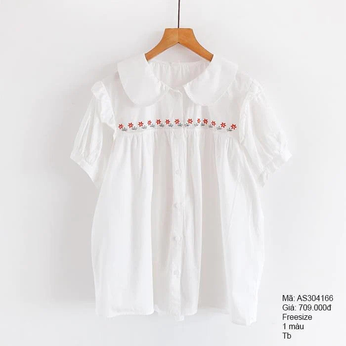 Áo sơ mi ngắn tay cổ bèo thêu hoa - AS304166