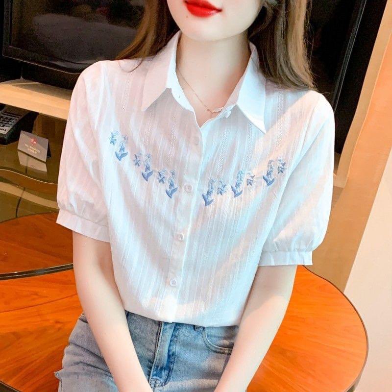 - Áo sơ mi ngắn tay cổ đức thêu hoa lá - AS402234