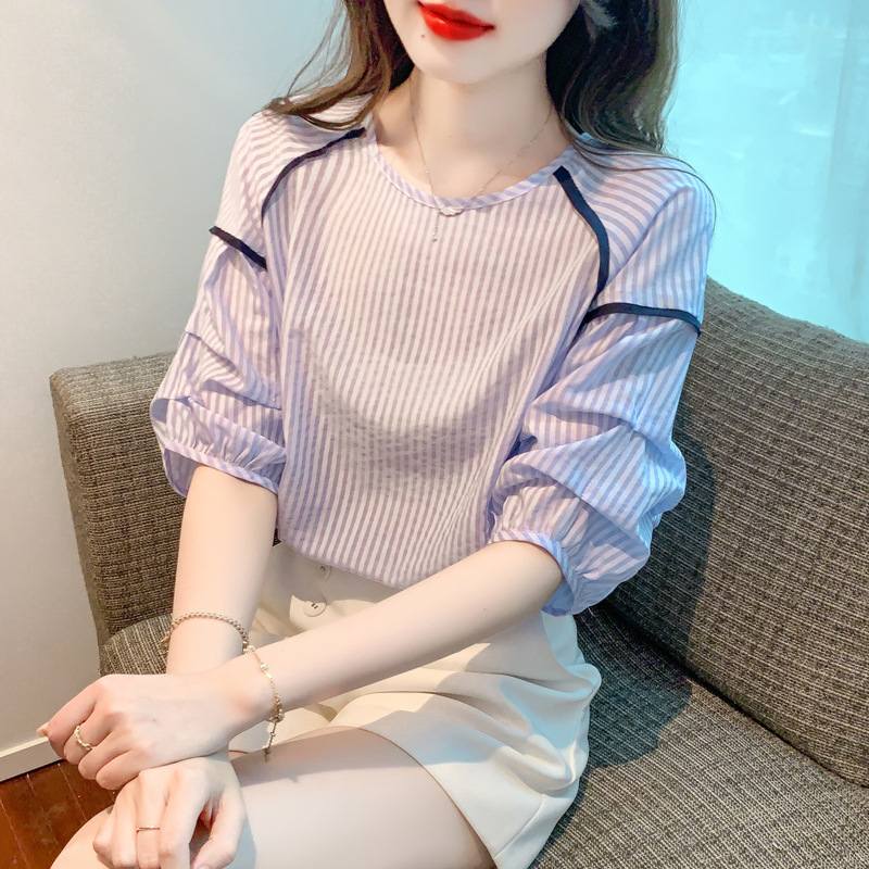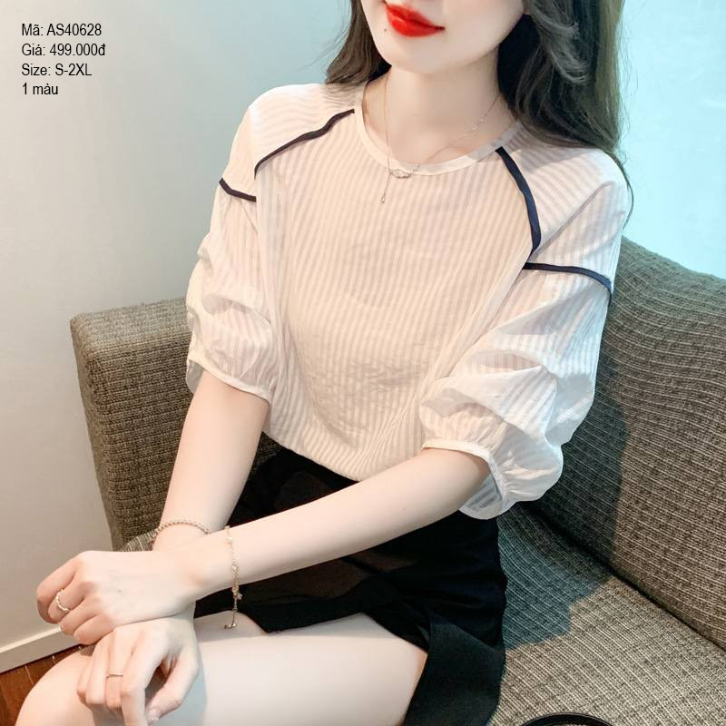 Áo sơ mi ngắn tay cổ tròn vai kiểu - AS406284