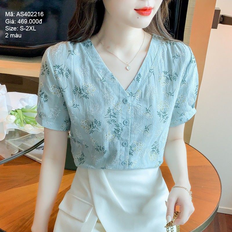 - Áo sơ mi ngắn tay cổ V in hoa - AS402216