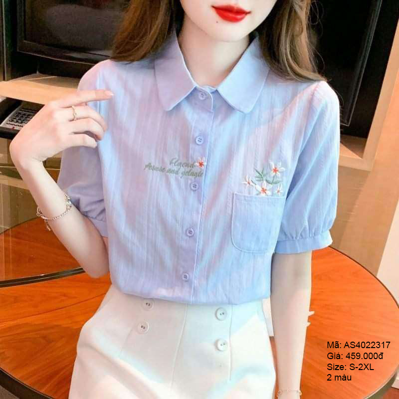 - Áo sơ mi ngắn tay thêu hoa 5 cánh - AS4022317