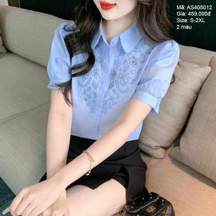 Áo sơ mi cổ đức thêu hoa - AS502404